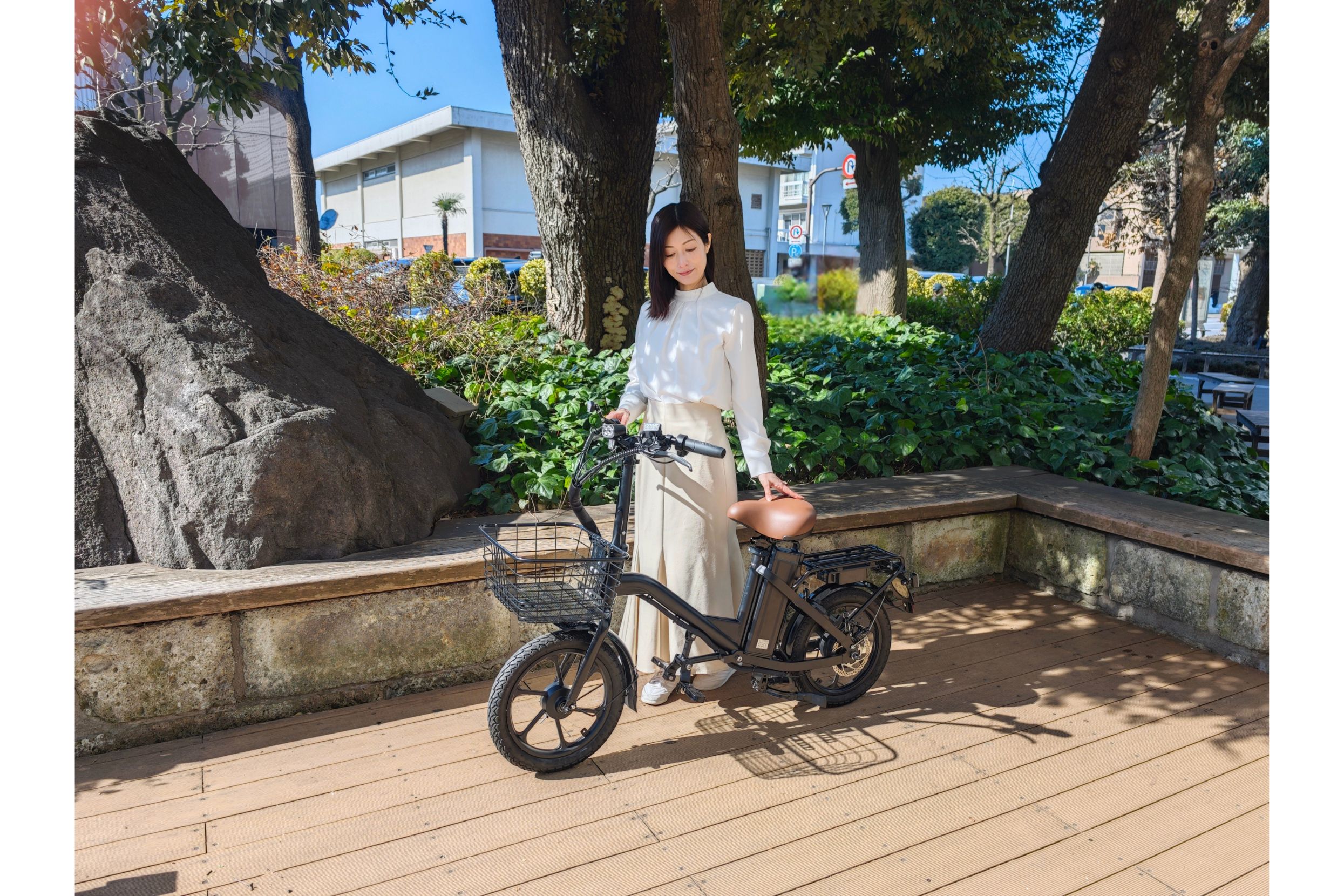 低くまたぎやすいステップスルー設計で、スカートでも楽に乗り降りできます。